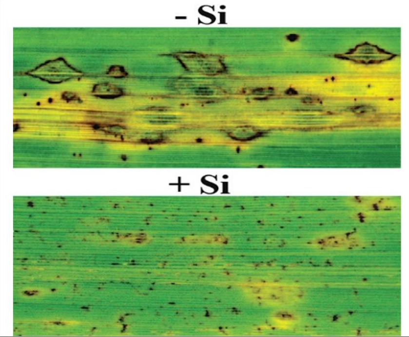 2. Silic có tác dụng hạn chế sâu bệnh hại | – Hạn chế bệnh phấn trắng trên các cây họ bầu bí, dưa – Hạn chế bệnh đạo ôn, khô vằn, đặc biệt là bạc lá trên cây lúa – Hạn chế tuyến trùng, trên các cây như bắp cải, cà rốt, dưa chuột, hồ tiêu… – Hạn chế các bệnh thán thư như: trên cây ớt, khoai tây… – Hạn chế bệnh héo xanh, héo rũ trên các cây họ nhà cà, dâu tây… – Chống lại hiện tượng thối quả, thối rễ |