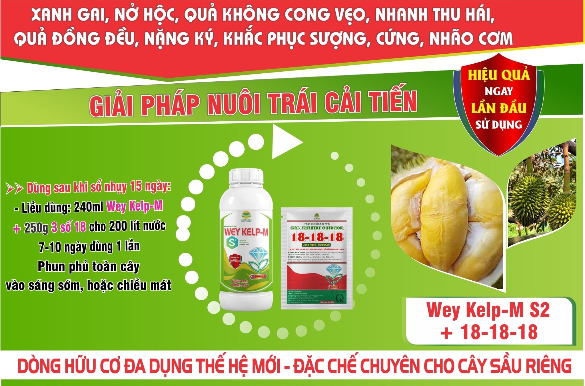 7. Cây bị nấm bệnh: giai đoạn mưa nhiều cây dễ bị nấm bệnh, cần phun cùng Balld 60WG với CHỐNG RỤNG TỨC THÌ để ngăn chặn bệnh từ xa, nếu cây có bộ lá yếu cần phun cùng với Zinmax 240ml/400 lít 8. Đối với giai đoạn nuôi trái, cần dùng Bộ nuôi trái hữu cơ + 3 số 18 cộng thêm Kaly hữu cơ nếu cây có xu hướng đi đọt hoặc mưa nhiều: xem ảnh dưới