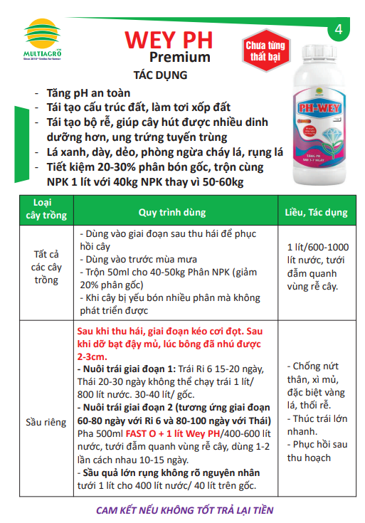 - Dùng tốt sau thu hoạch, giai đoạn kéo cơi và nuôi trái